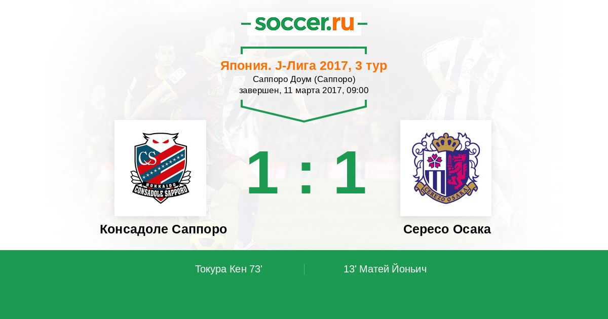 Протокол матча Консадоле Саппоро против Сересо Осака