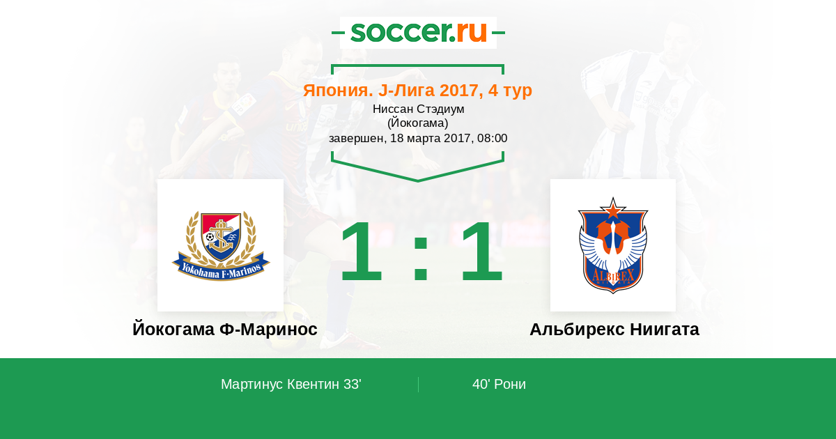 Протокол матча Йокогама Ф-Маринос против Альбирекс Ниигата