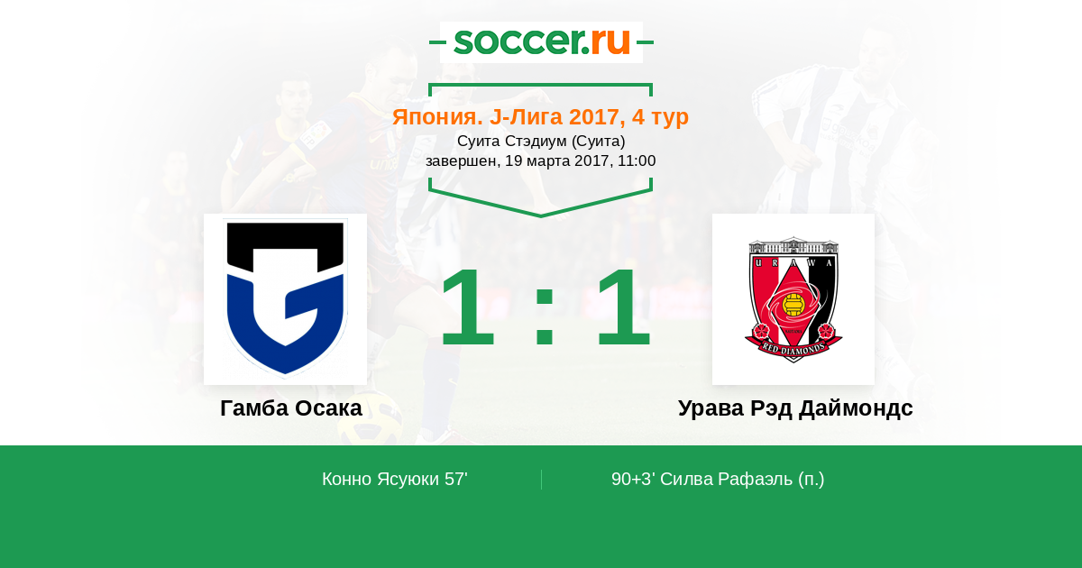 Протокол матча Гамба Осака против Урава Рэд Даймондс