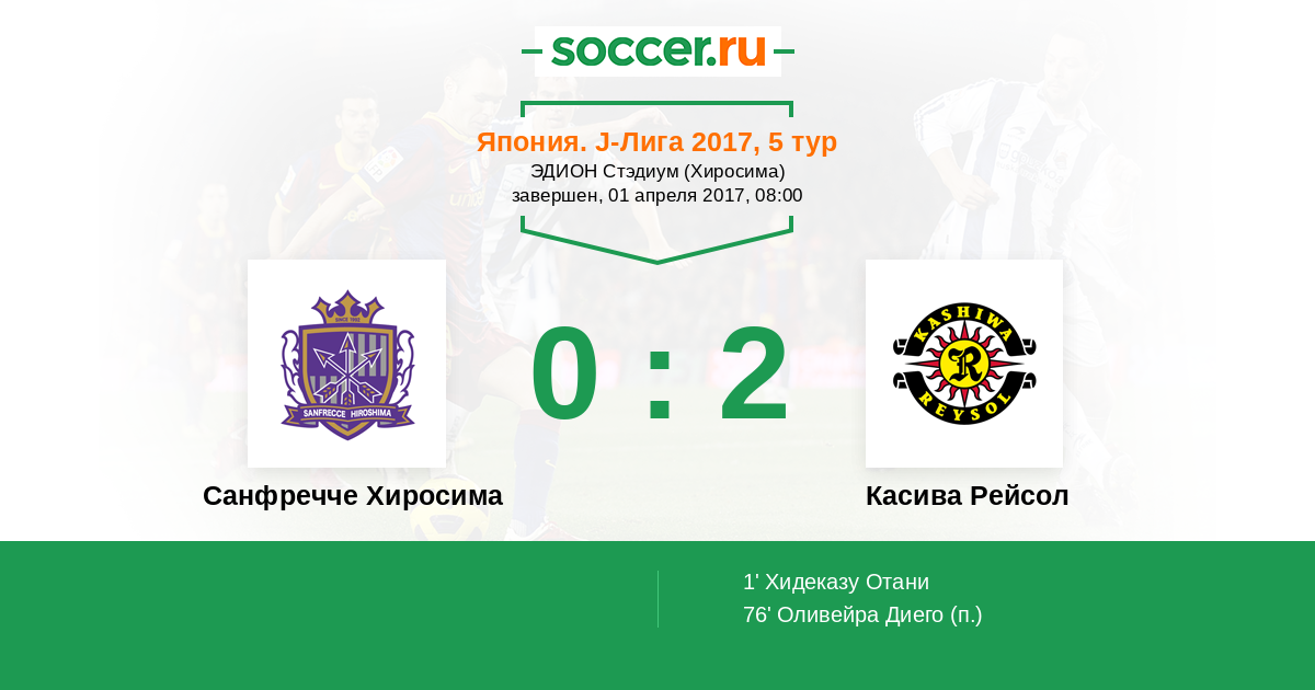 Протокол матча Санфречче Хиросима против Касива Рейсол