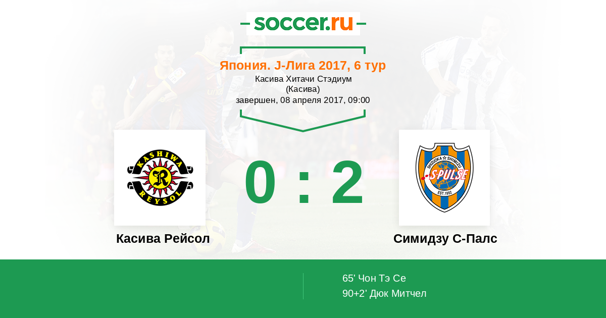 Протокол матча Касива Рейсол против Симидзу С-Палс