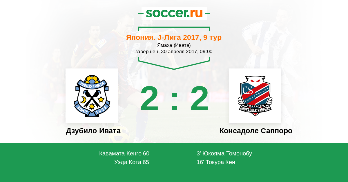 Протокол матча Дзубило Ивата против Консадоле Саппоро