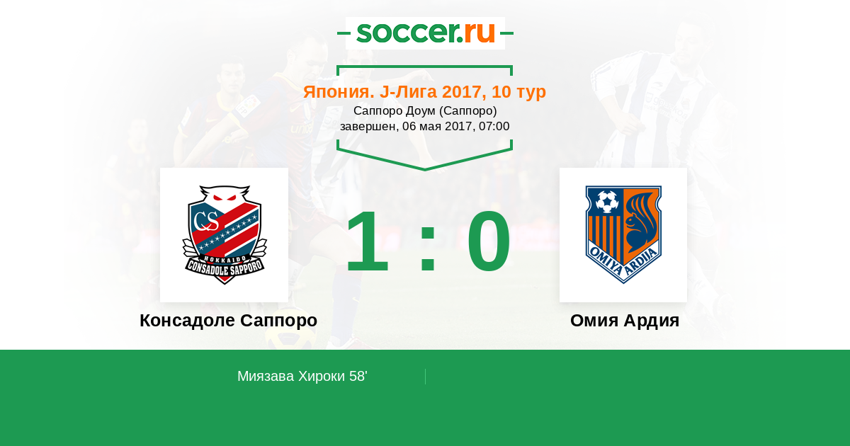 Протокол матча Консадоле Саппоро против Омия Ардия