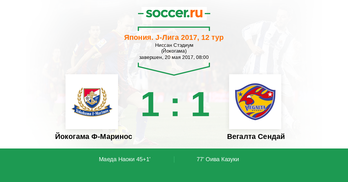 Протокол матча Йокогама Ф-Маринос против Вегалта Сендай