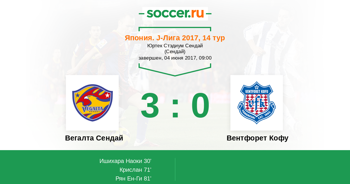 Протокол матча Вегалта Сендай против Вентфорет Кофу