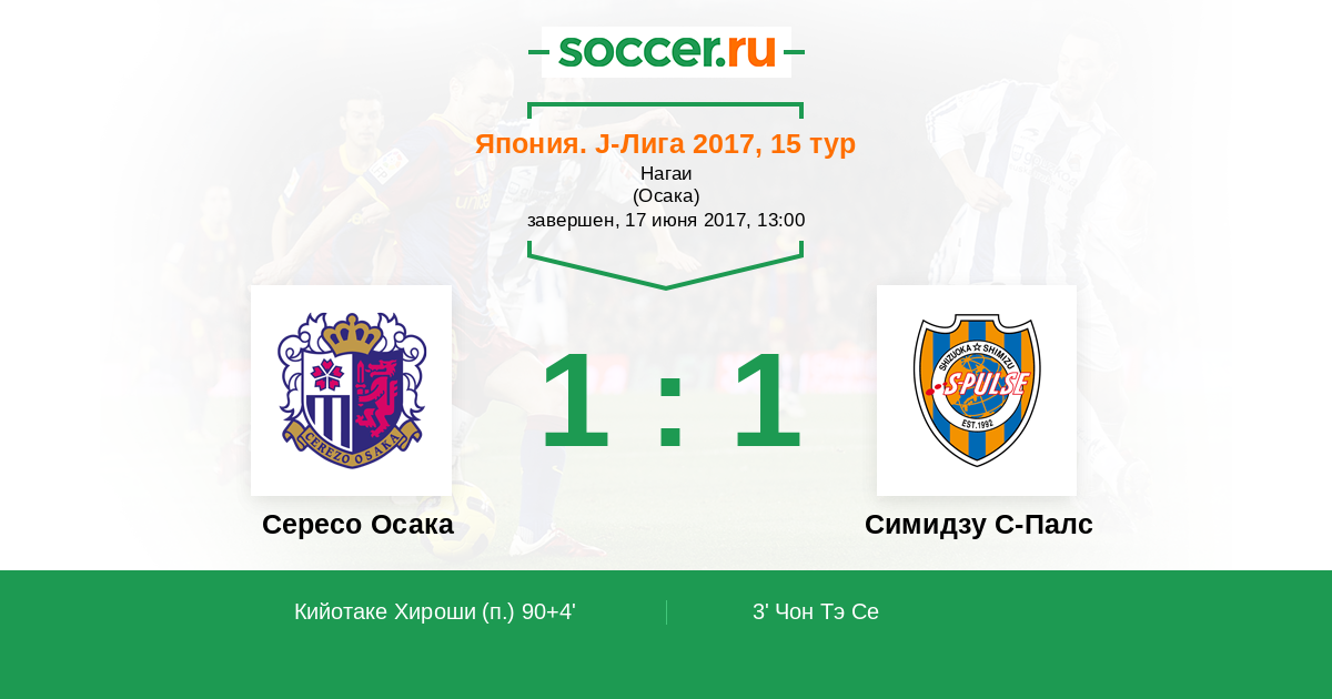 Протокол матча Сересо Осака против Симидзу С-Палс