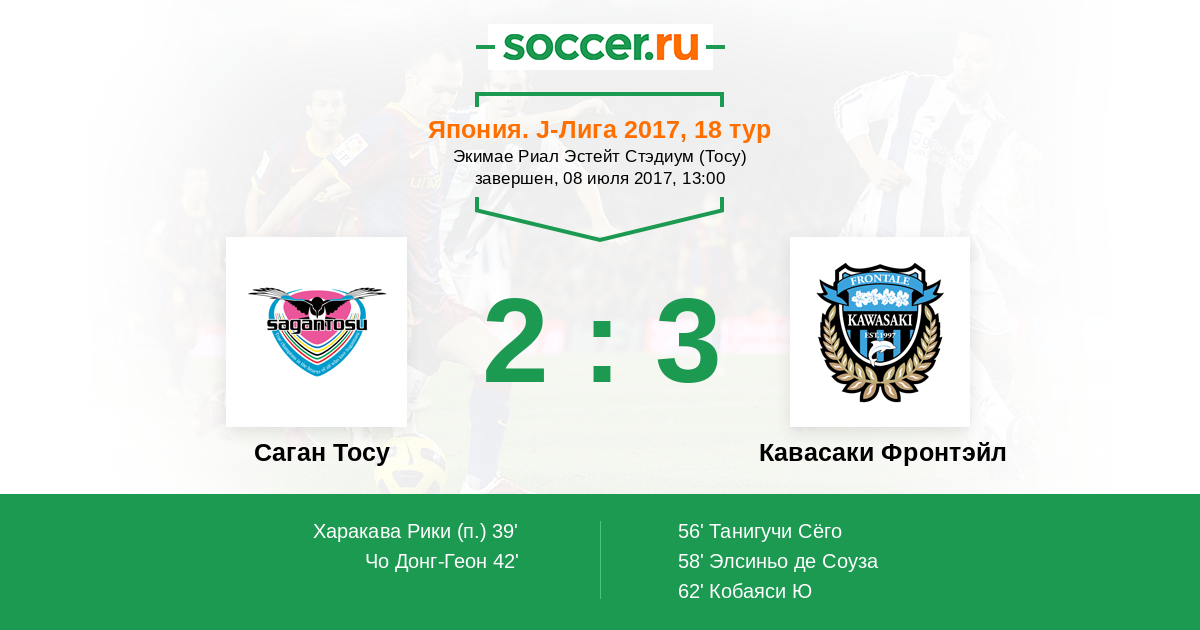 Протокол матча Саган Тосу против Кавасаки Фронтэйл