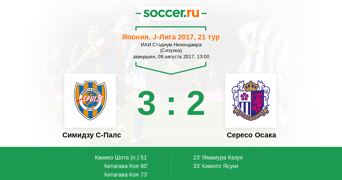 Протокол матча Симидзу С-Палс против Сересо Осака