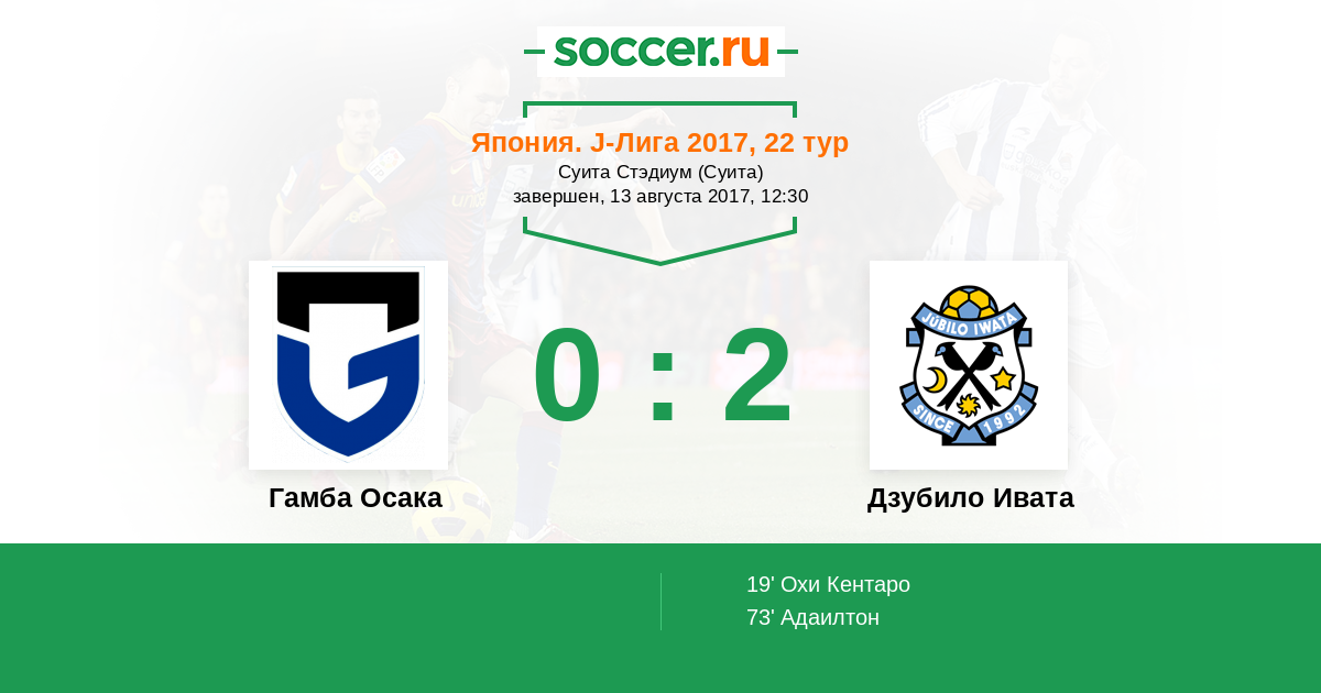Протокол матча Гамба Осака против Дзубило Ивата