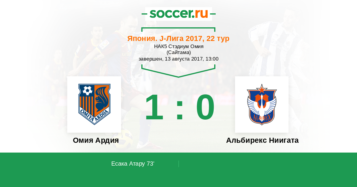 Протокол матча Омия Ардия против Альбирекс Ниигата