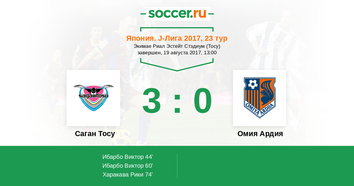 74' (3:0) Харакава Рики (4) (Ибарбо Виктор (32))