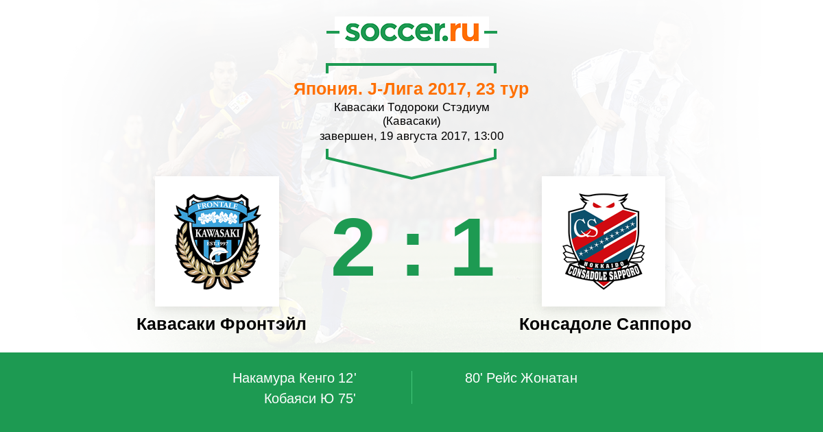 Протокол матча Кавасаки Фронтэйл против Консадоле Саппоро