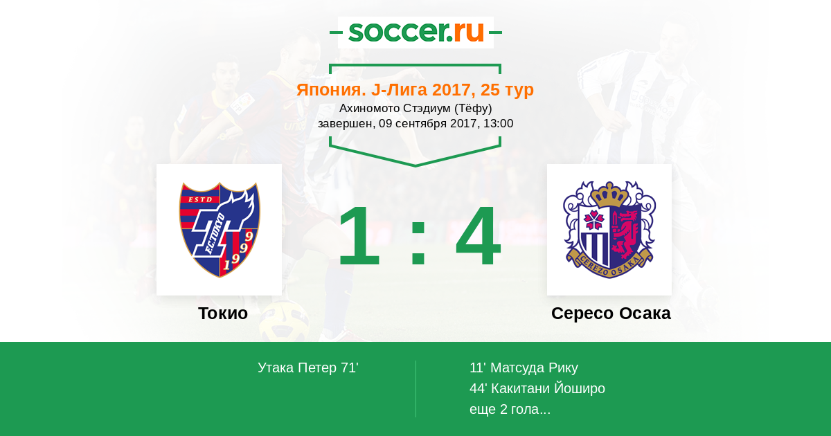 Протокол матча Токио против Сересо Осака