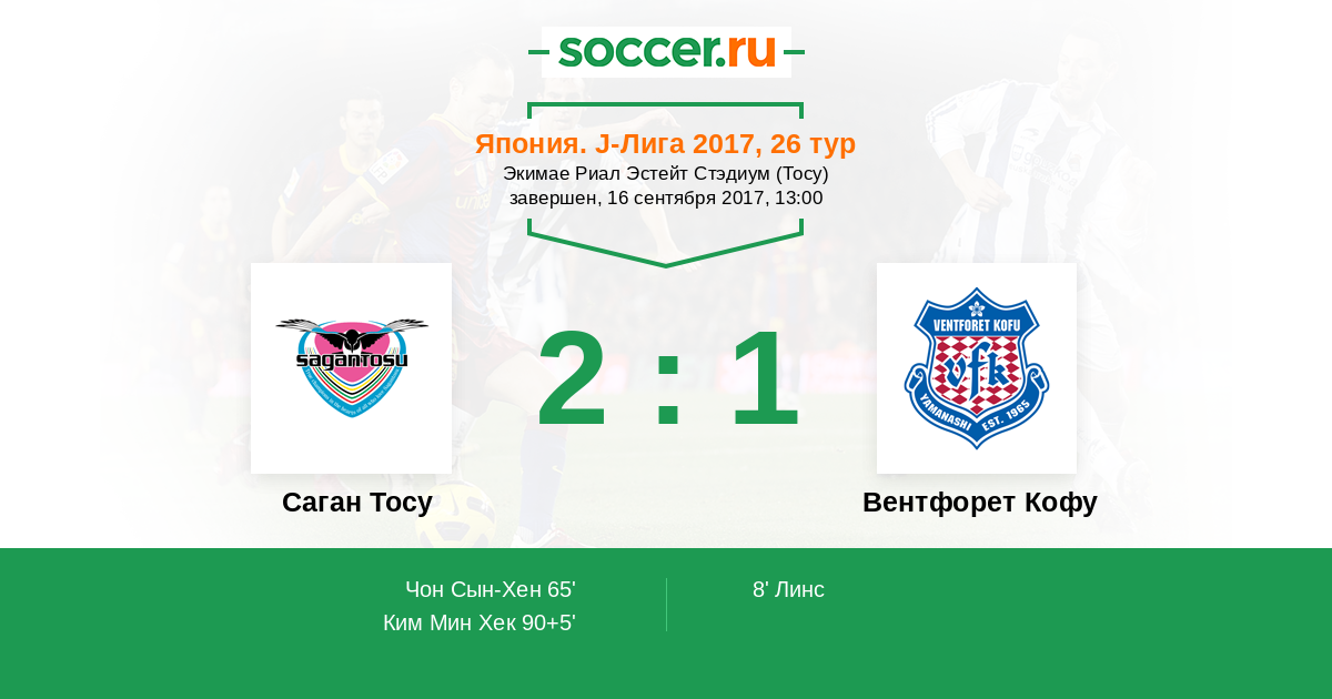 Протокол матча Саган Тосу против Вентфорет Кофу
