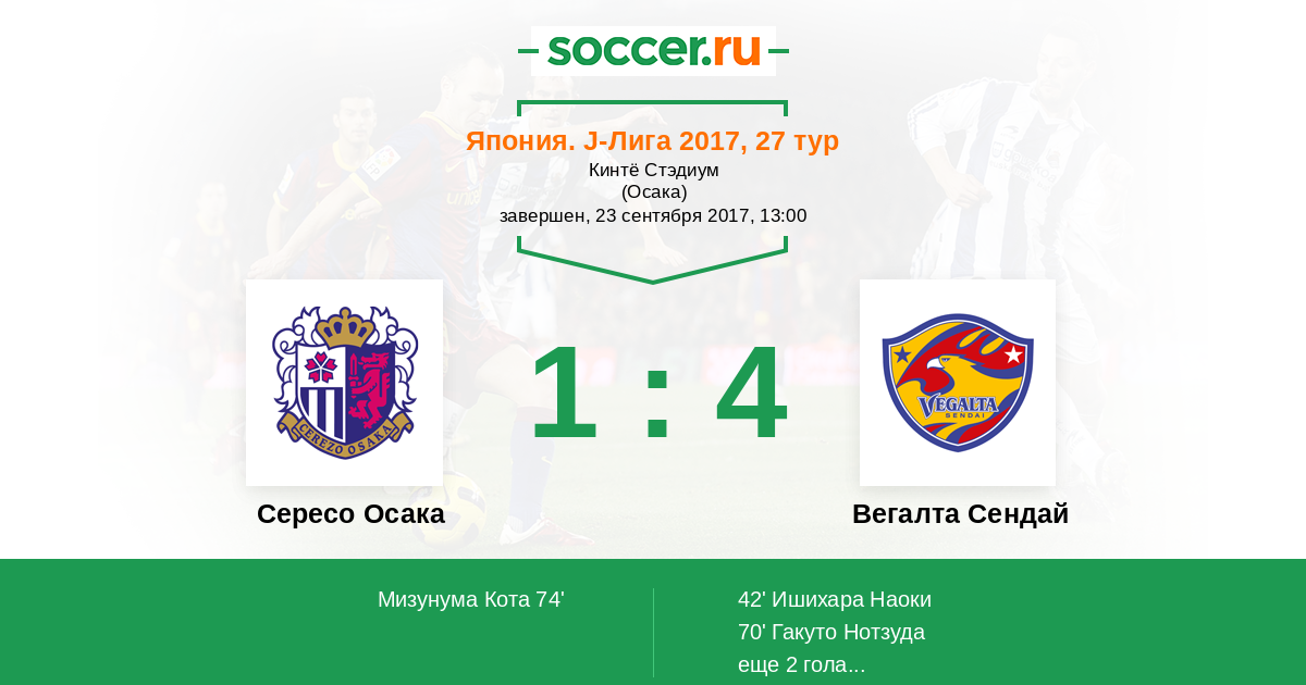 Протокол матча Сересо Осака против Вегалта Сендай