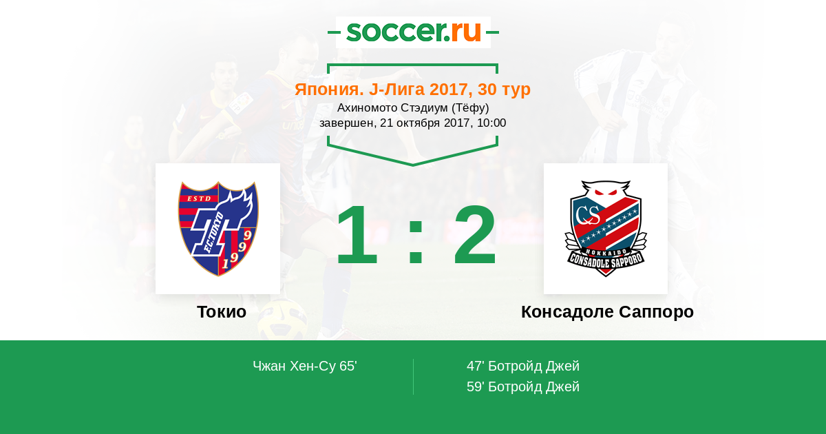Протокол матча Токио против Консадоле Саппоро