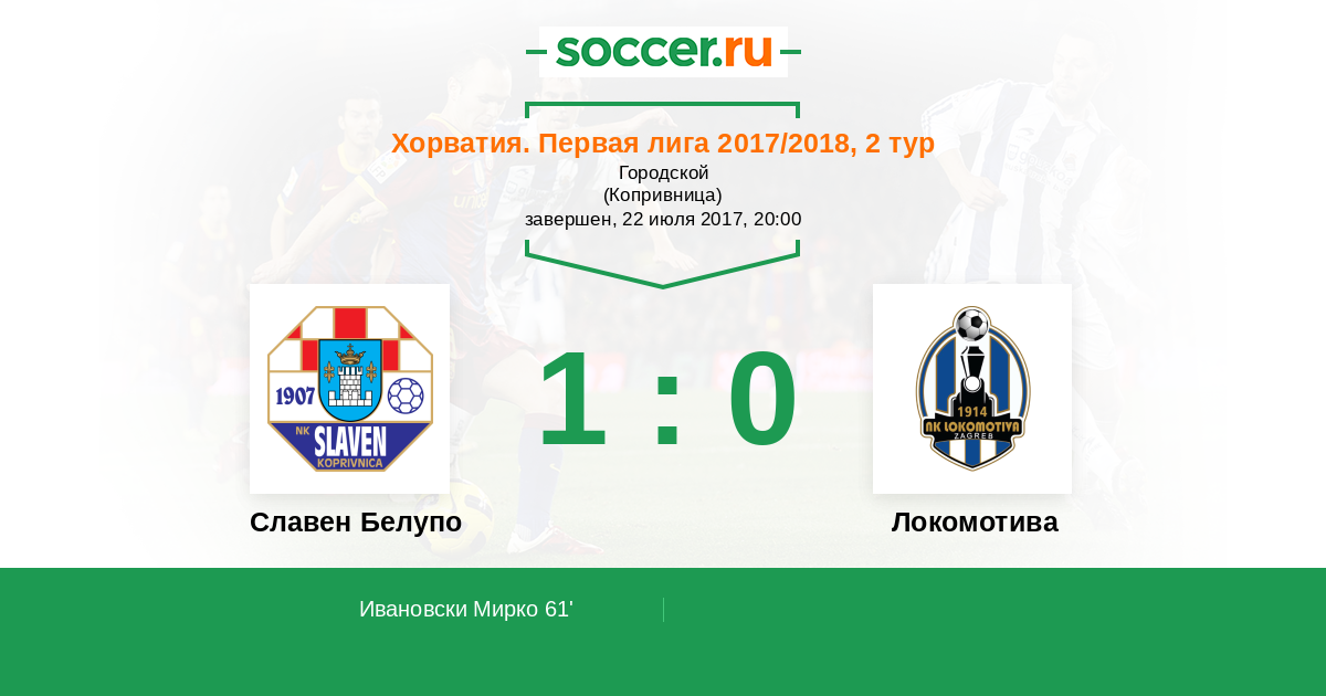 Протокол матча Славен Белупо против Локомотива