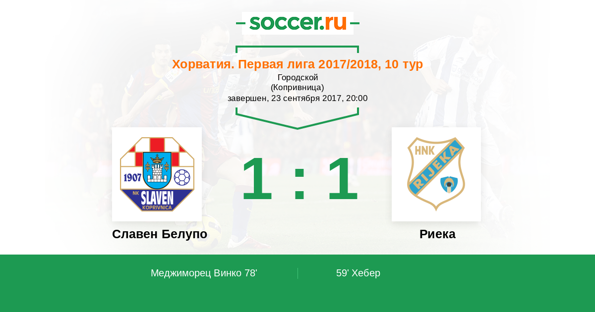 Протокол матча Славен Белупо против Риека
