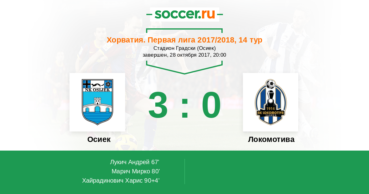 Протокол матча Осиек против Локомотива
