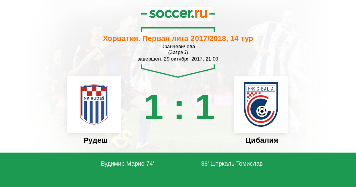 Протокол матча Рудеш против Цибалия