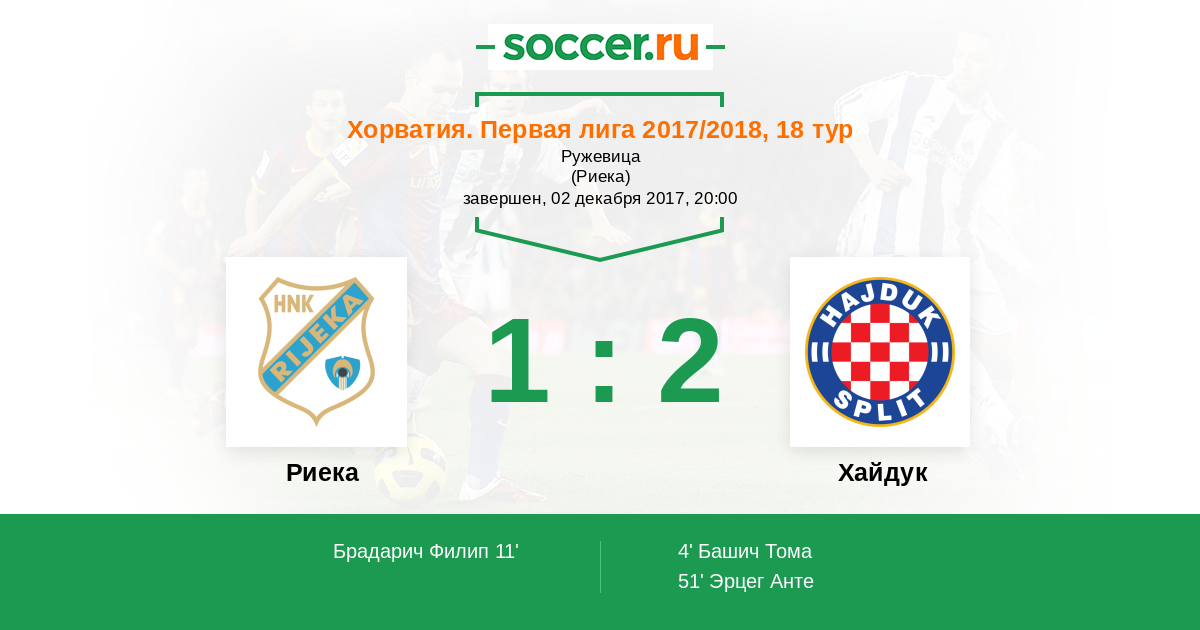 Протокол матча Риека против Хайдук
