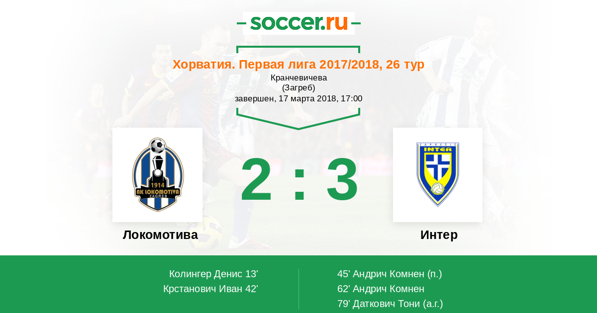 Протокол матча Локомотива против Интер