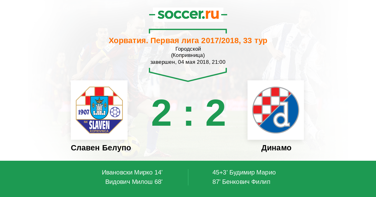 Протокол матча Славен Белупо против Динамо