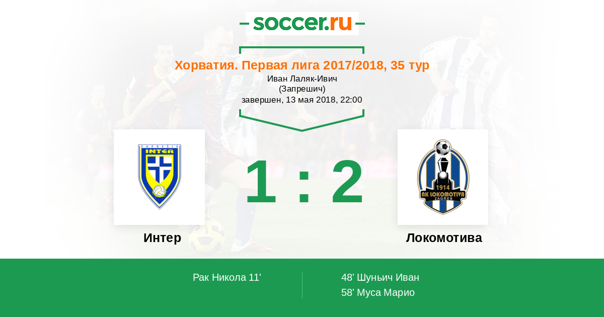Протокол матча Интер против Локомотива
