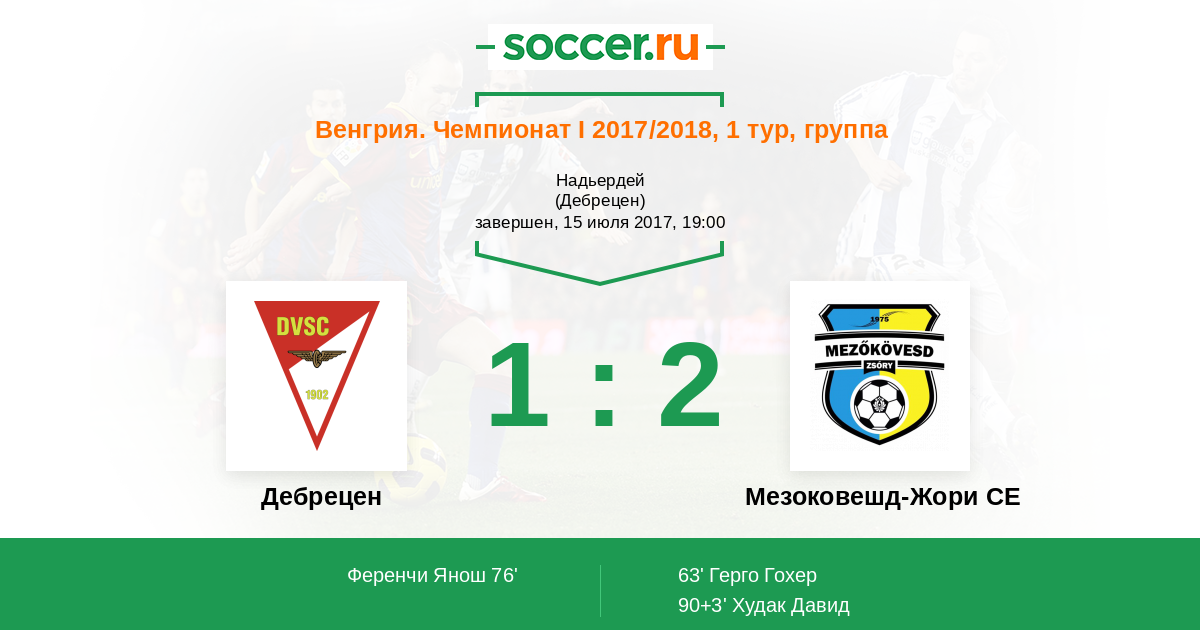 Протокол матча Дебрецен против Мезоковешд-Жори СЕ