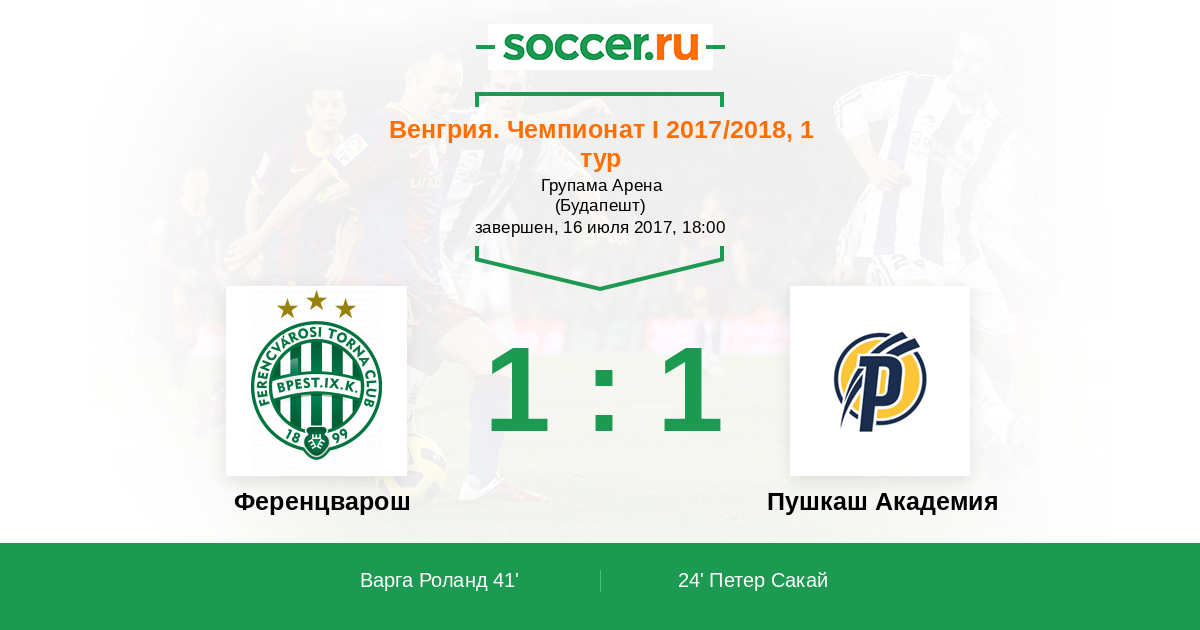 Протокол матча Ференцварош против Пушкаш Академия