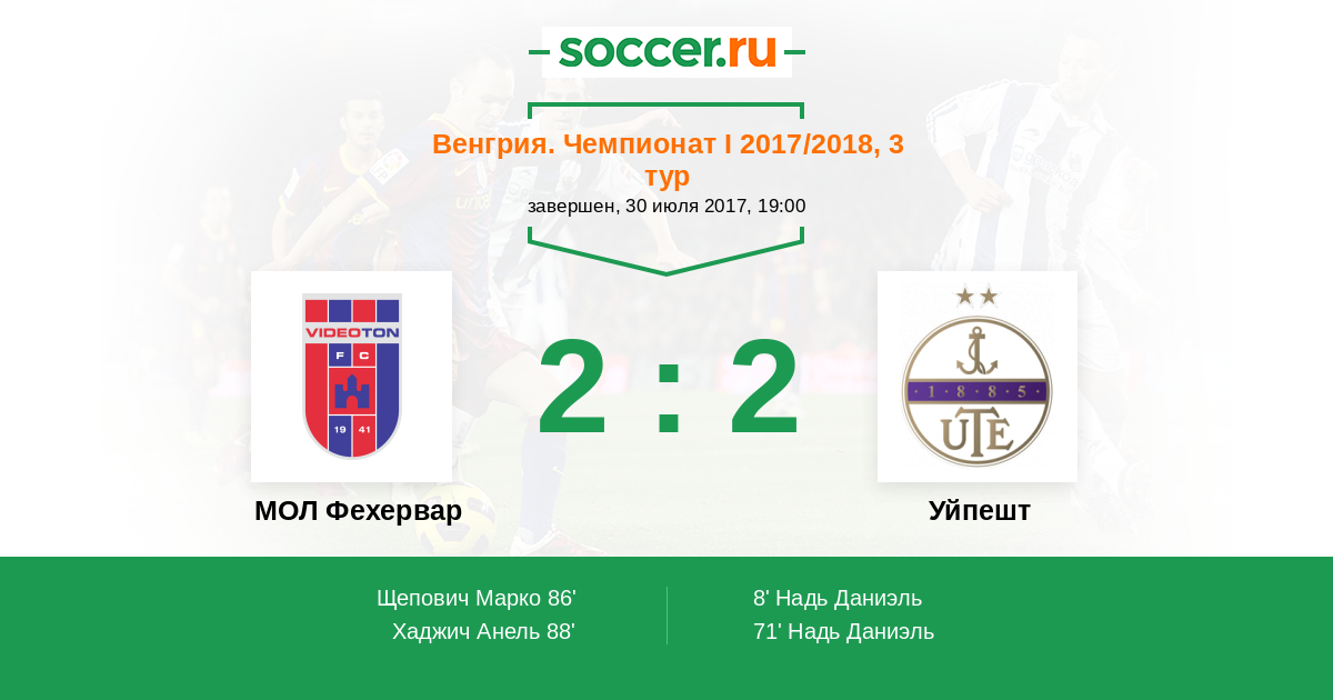 Протокол матча Видеотон против Уйпешт