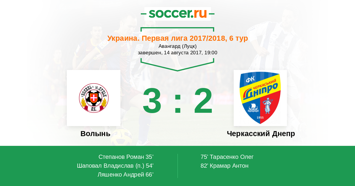 Протокол матча Волынь против Черкасский Днепр