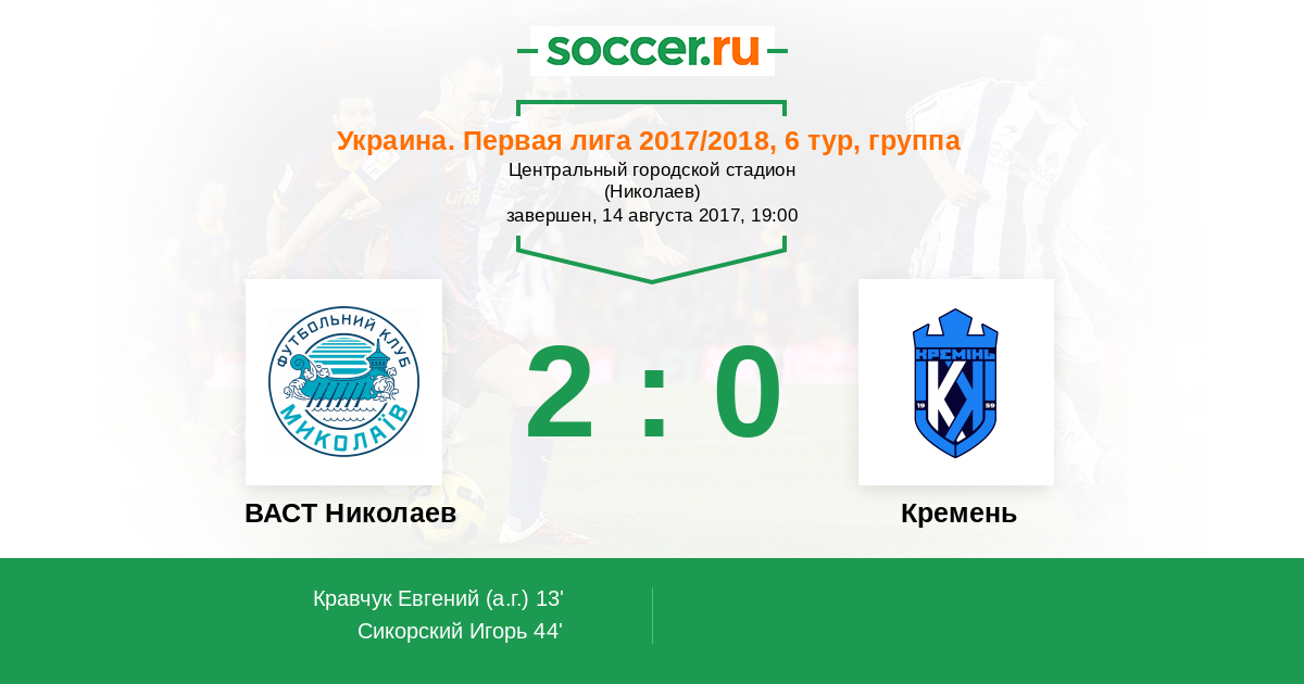 Протокол матча ВАСТ Николаев против Кремень
