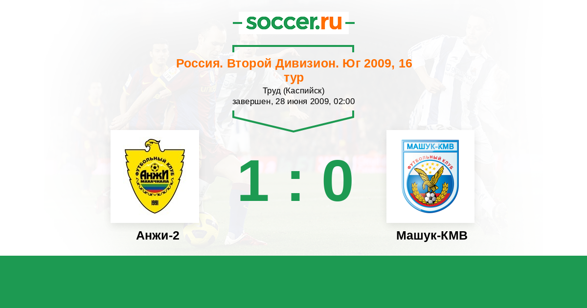 Россия. Вторая лига. Группа 1 15.10.2009 Машук-КМВ Логотип футбольный клуб Машук-КМВ (Пятигорск) 2:2 Логотип футбольный клуб Дагдизель (Махачкала) Дагдизель