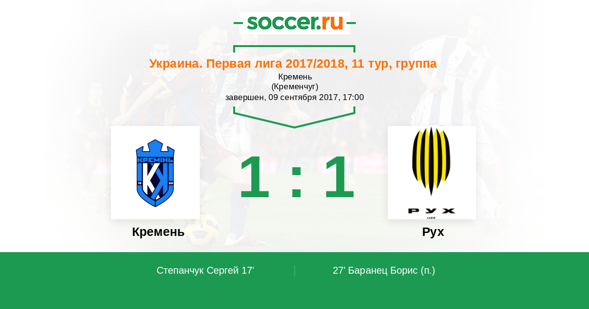 Протокол матча Кремень против Рух