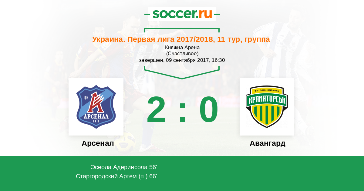 Протокол матча Арсенал против Авангард