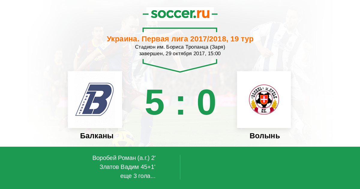 Протокол матча Балканы против Волынь