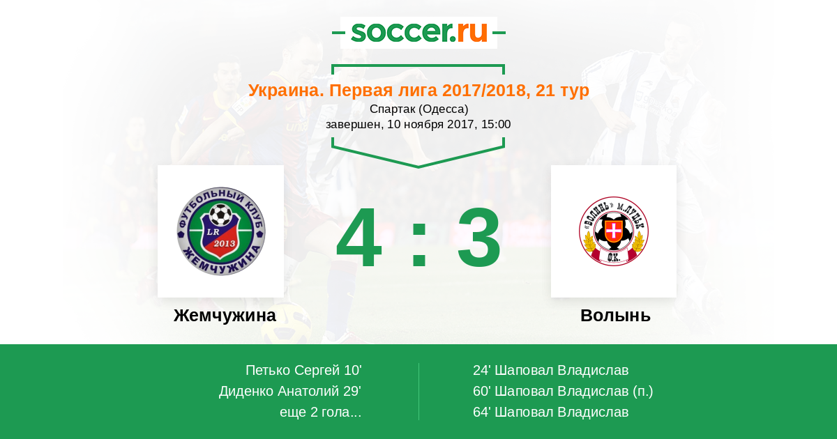 Протокол матча Жемчужина против Волынь