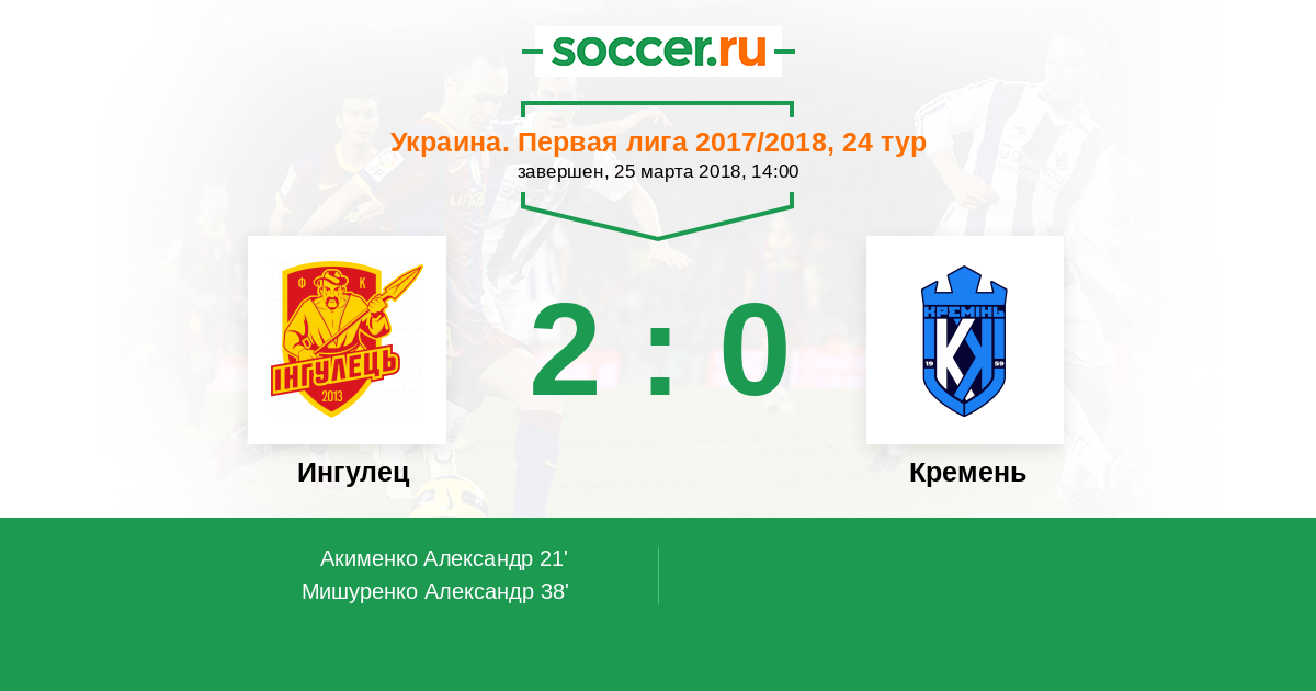 Протокол матча Ингулец против Кремень