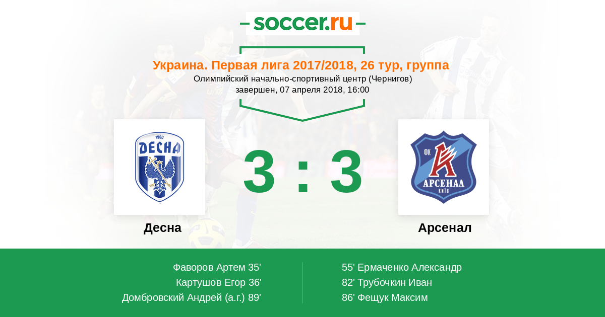 Протокол матча Десна против Арсенал