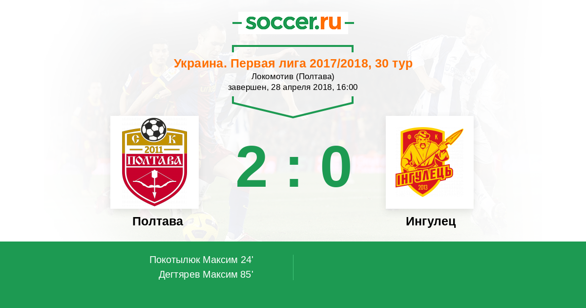 Протокол матча Полтава против Ингулец