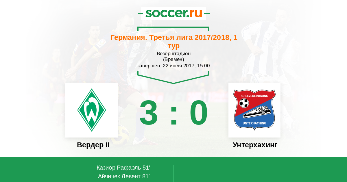 Протокол матча Вердер II против Унтерхахинг