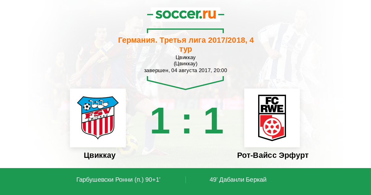 Протокол матча Цвиккау против Рот-Вайсс Эрфурт