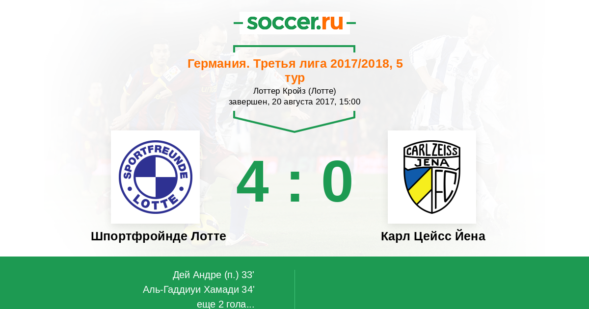 Протокол матча Шпортфройнде Лотте против Карл Цейсс Йена