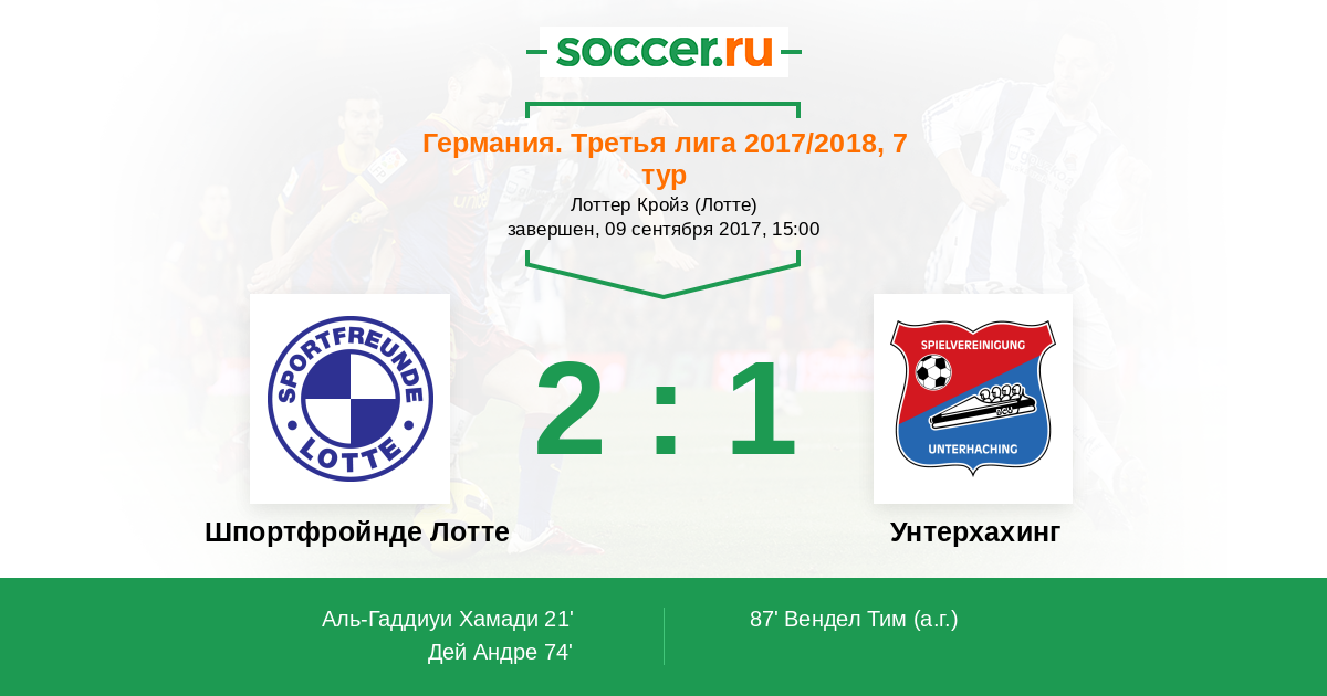 Протокол матча Шпортфройнде Лотте против Унтерхахинг