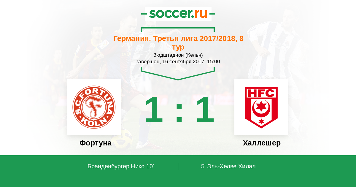 Протокол матча Фортуна против Халлешер