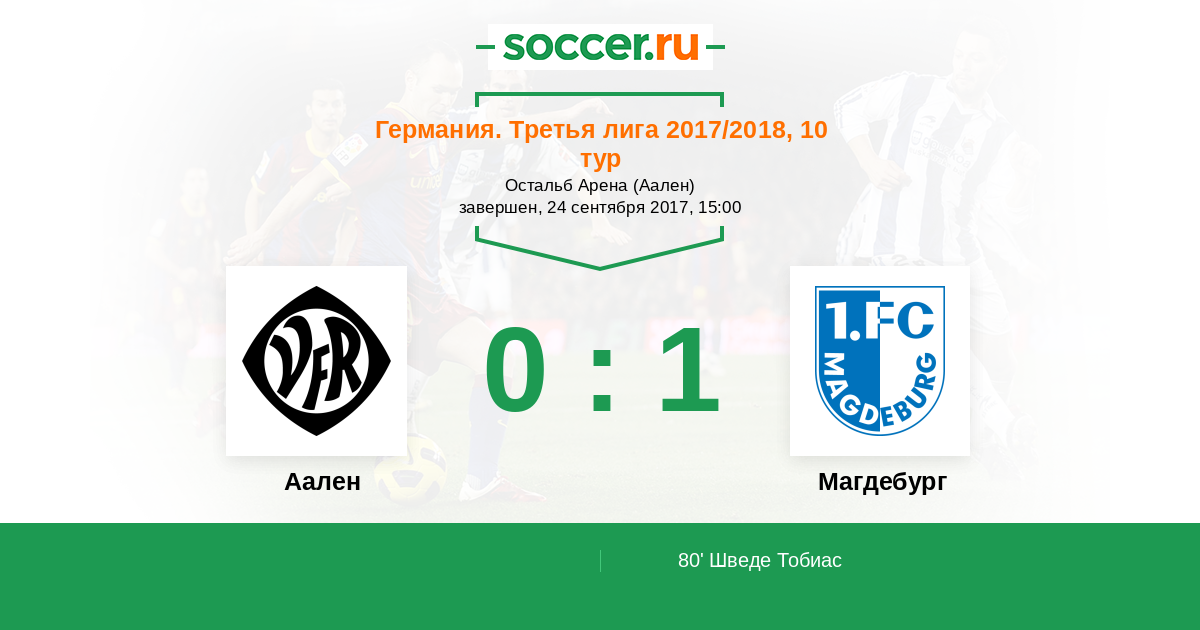 80' (0:1) Шведе Тобиас (15) (Бутзен Нильс (16))
