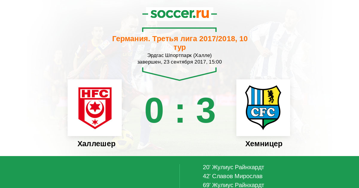 Протокол матча Халлешер против Хемницер