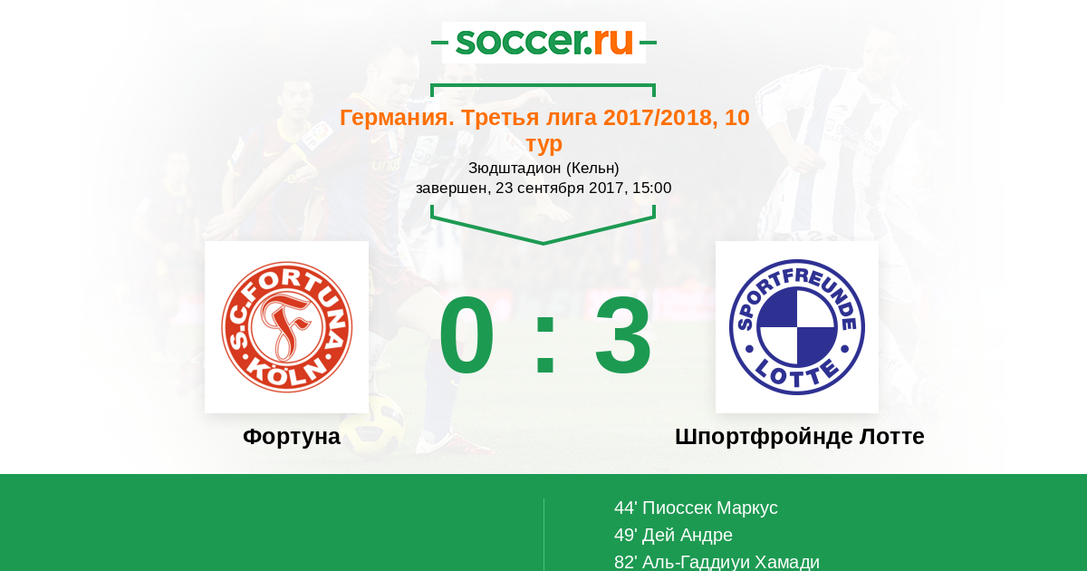 Протокол матча Фортуна против Шпортфройнде Лотте