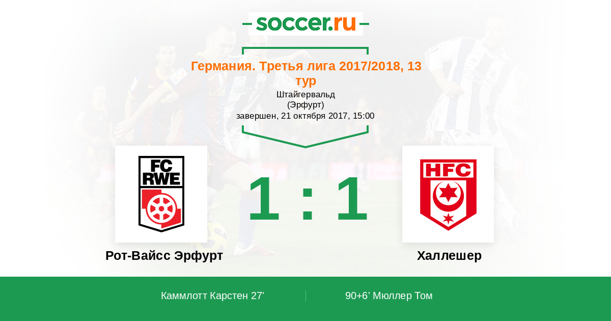 Протокол матча Рот-Вайсс Эрфурт против Халлешер